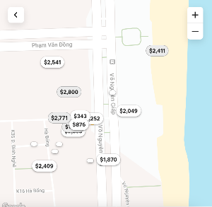 여기는 한달살기 말고도 다낭 여행을 온 가족단위의 여행객들도 많이 머물고 있는 것 같았다. 여기도 에어비엔비에서 이 위치를 확대해 보면 많은 리스팅들이 올라와 있는 것을 확인할 수 있다. 에어비엔비 리스팅된 가격은 1500-2400 USD 정도이다 (200-300만원).