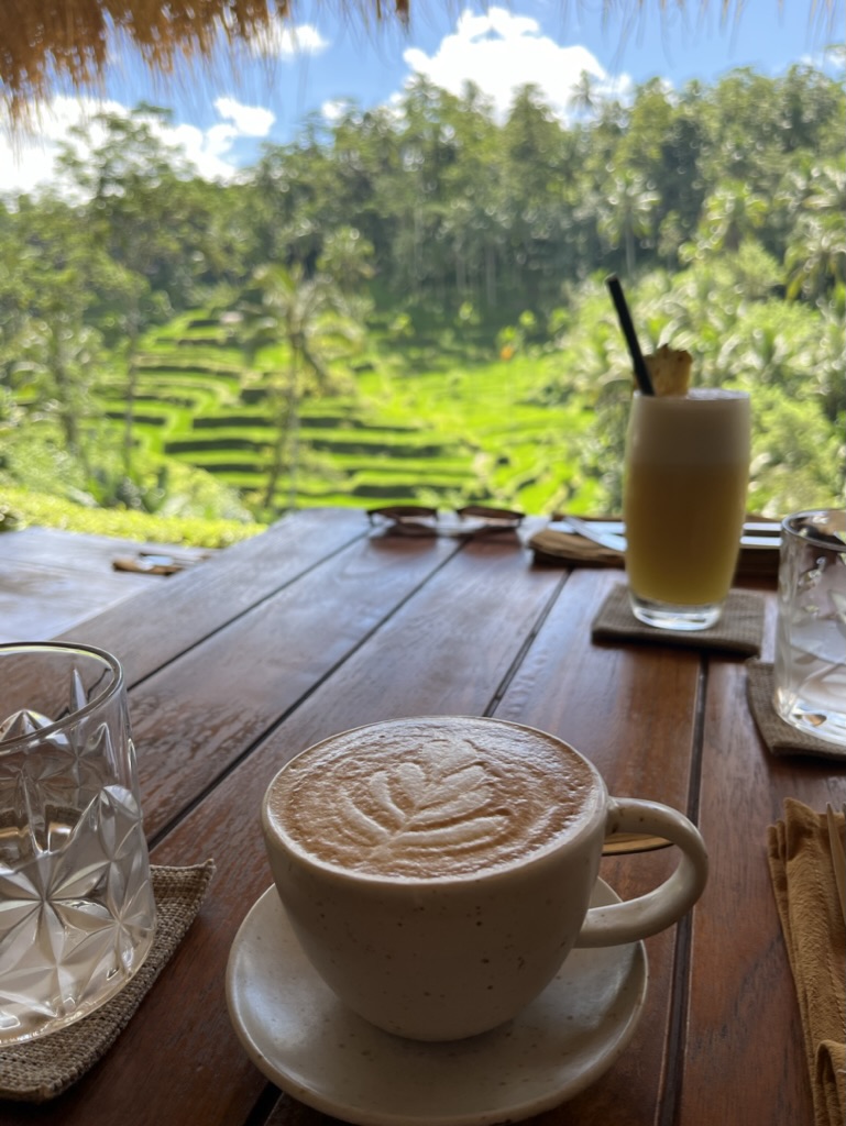 이곳은 우붓에서는 좀 떨어져 있는 뜨랑갈랑 계단식 논에 위치한 카페이다 (스쿠터로 20분 정도!). 뜨랑갈랑의 대표적인 논뷰를 즐기며 커피를 마실 수 있다. 카페 내부에 입장료를 내고 즐길 수 있는 논뷰 수영장과 발리스윙도 운영하고 있다.