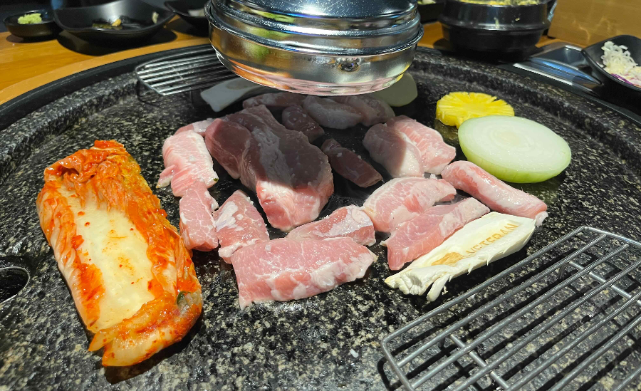우리는 삼겹살, 항정살, 가브리살을 시켰는데 다 너무 맛있었다.ㅎㅎ 직원들이 처음부터 끝까지 다 먹기좋게 구워주신다. 삼겹살엔 당연히 김치!! 김치도 맛있다.. 새콤새콤해서 삼겹살 기름에 구워놓으면 딱 맛있는 김치! 다 구워졌을 때 쯤 기름 뿌리고 불쇼까지!! 보는 재미도 쏠쏠하다ㅋㅋ