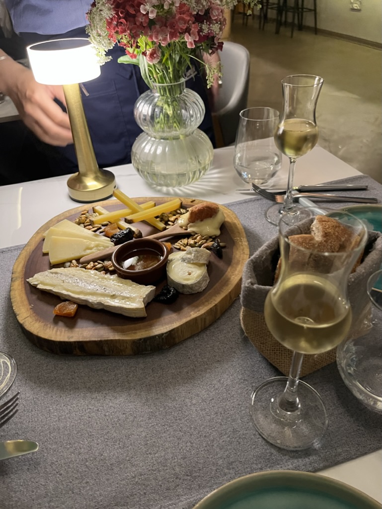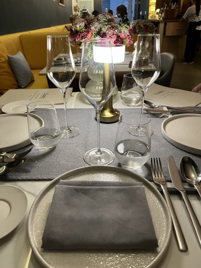 드레스코드는 스마트 캐주얼! 코스메뉴는 웹사이트를 통해 예약을 하고 가야한다 (예약하며 5코스와 7코스 중 미리 선택한다). 깔끔하고 모던한 분위기에 친절한 직원들. 우리는 7코스에 프리미엄 와인 페어링을 선택했다. 소믈리에인 부인분께서 직접 맞아주신다.ㅎㅎ