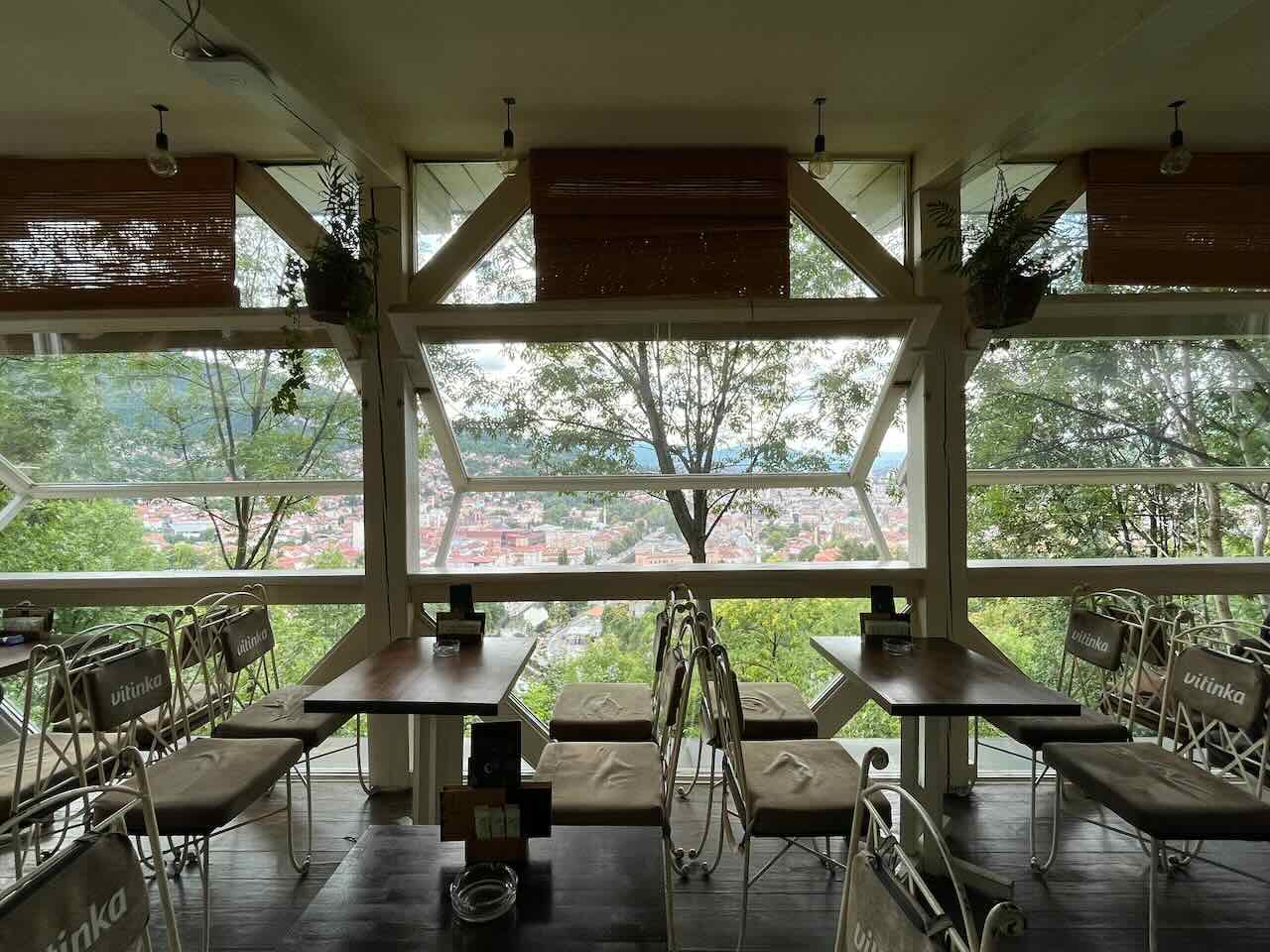 화이트 요새 근처의 뷰맛집! 이곳은 카페보다는 식당에 더 가깝지만, 뷰를 즐기며 커피나 맥주 한잔 하고 오기에도 좋다. 사라예보를 둘러싸고 있는 산뷰가 너무 멋진 곳이다!