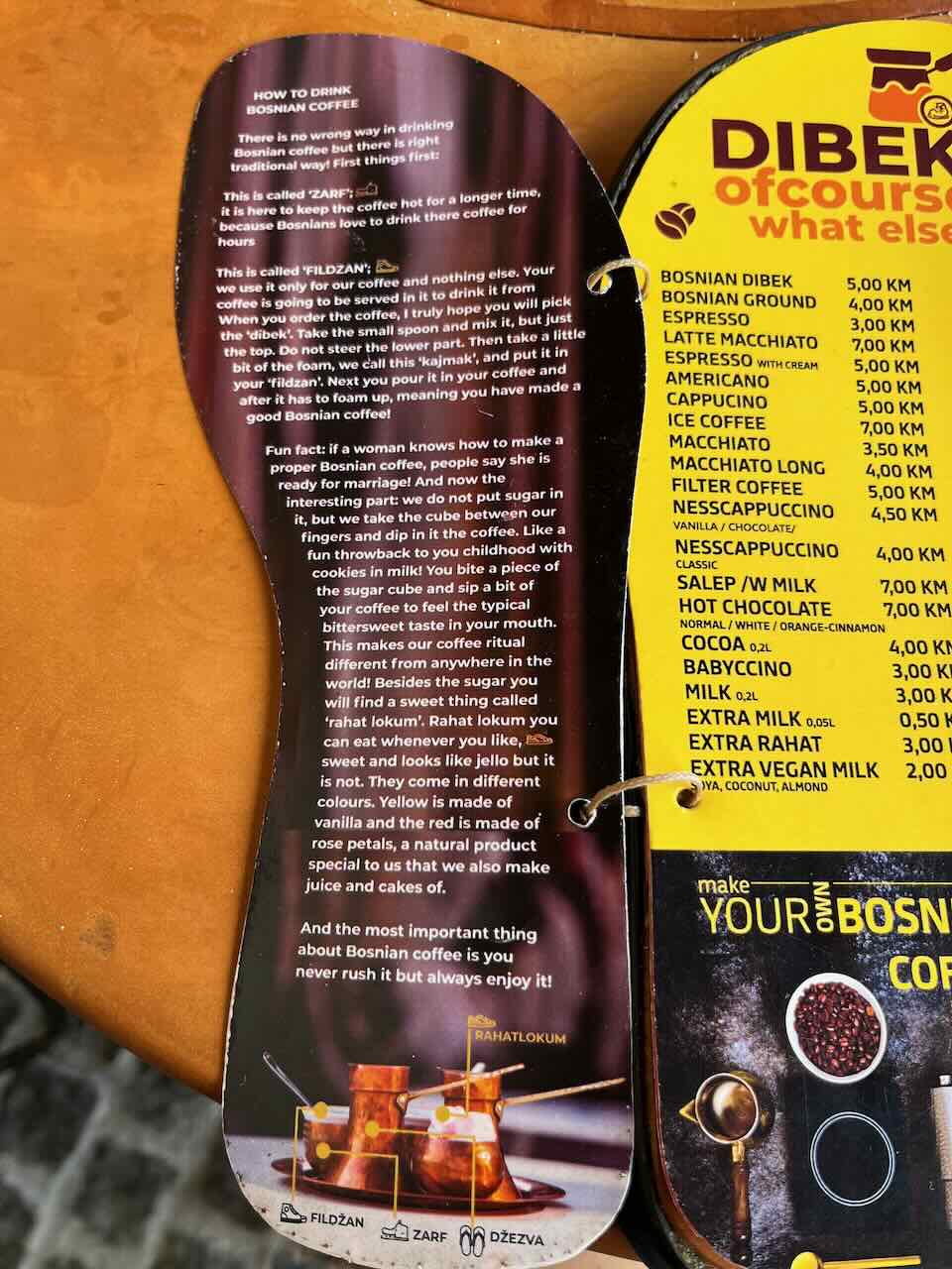 자, 그렇다면 어떻게 커피를 마셔야 보스니아 현지인처럼 커피를 마실 수 있을까? 보스니아 커피를 현지인처럼 제대로 즐길 수 있는 방법을 친절히 설명하고 있는 사라예보의 카페 Andar! 할아버지와 아버지께서 운영하시던 신발집을 물려받아 카페로 바꾸어 운영하고 있어서 (시대가 변해서 신발집으로 더이상 생계를 유지해나가기가 어려웠다고 한다) 카페 곳곳 예전 신발집의 흔적을 찾아볼 수 있다.