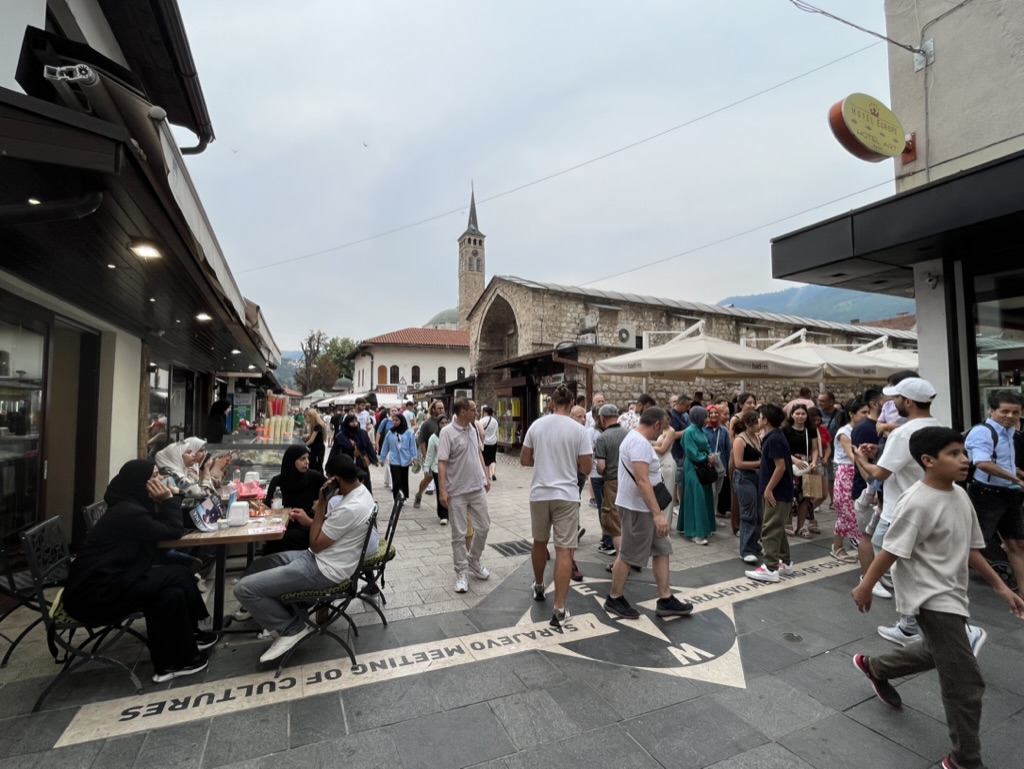 사라예보 시내 바닥에 그려져 있는 사라예보 문화의 만남 (Sarajevo meeting of cultures) 선을 지나가면 마치 튀르키예에 온것같은 느낌이 든다. 오랜 시간동안 받은 오스만 제국의 영향이 여전히 그대로 남아있는 보스니아! 지금도 이슬람교인이 절반이상을 차지하고 있다.