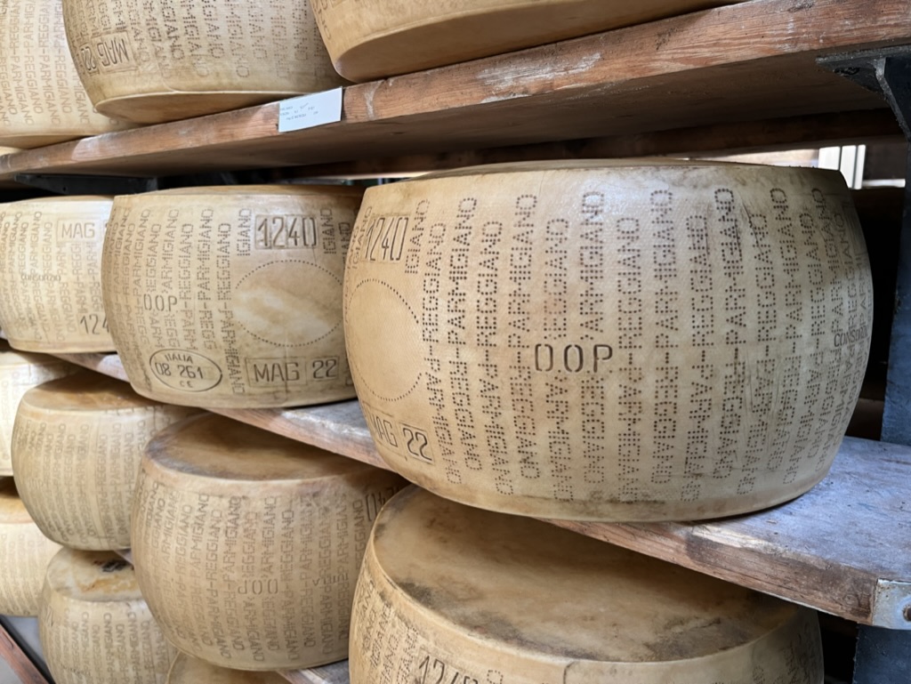 여기에서 배운 재미있는 사실 하나 - 치즈 커드를 틀에 넣고 압축하여 모양을 만들 때 치즈 표면에 생산 날짜와 고유 번호를 적힌 틀에 넣어 글자를 각인한다. 이때 사용되는 틀은 그냥 플라스틱 툴이고 치즈가 그 안에서 굳으며 글자가 새겨지는 것이기 때문에 치즈 표면에 글씨가 적혀 있다고 잘라내고 먹지 않아도 된다 (치즈 끝부분 잘라내고 먹는 사람은 나뿐인가..?ㅎㅎ). 파마지아노 레지아노 치즈는 처음부터 끝의 겉면까지 모두 다 먹을 수 있다!