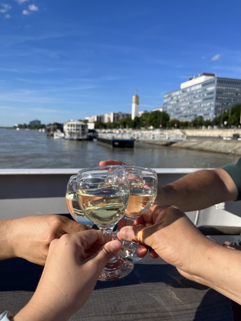 겟유어가이드의 크루즈는 웰컴드링크가 무료로 포함되있다. 크루즈에 입장하면 화이트와인과 레모네이드가 준비되어 있고 그 중 하나를 택해서 음료를 받고 자리에 앉도록 되어있다. 음료는 나중에 받고, 입장하자마자 무조건 좋은 자리부터 찜해놓은 뒤에 다시 음료를 받으러 오는걸 추천한다!! 약 한시간 정도의 크루즈에서 좋은 자리에 앉는건 너무나 중요하다. 우리는 크루즈 가장 앞자리에 테이블까지 있는 자리를 찜해서 다른 사람들에게 가려지지 않는 완벽한 뷰를 와인과 함께 즐겼다! 웰컴드링크가 부족하다면 원하는 다른 음료들도 추가 주문이 가능하다!