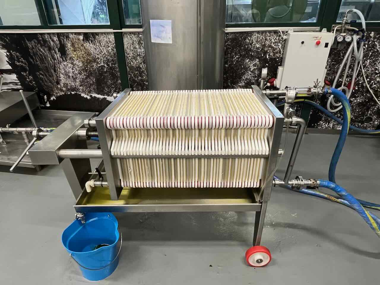 최종적으로 정제 과정을 거쳐 껍질이나 씨 등의 어떠한 불순물과 수분도 남아있지 않은 순수한 엑스트라 버진 올리브 오일만을 추출해낸다. 여과 과정은 사진에서 볼 수 있는 것처럼 몇백겹의 여과지를 거쳐 나온 순수한 오일만을 추출해낸다.
