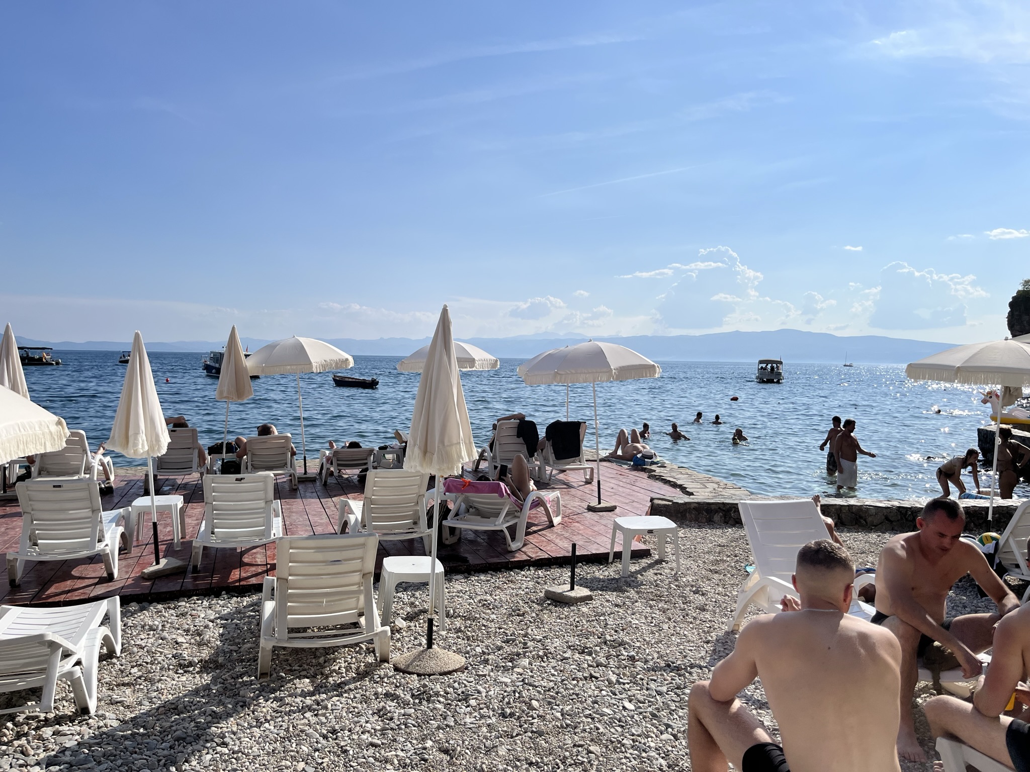 바다인지 호수인지 모를만큼 유럽에서 가장 오래되고, 유럽에서 가장 깊은 호수의 장엄함을 뽐내고 있는 오흐리드 호수는 바라보기만 해도 멋지고, 그 깊은 물에 몸을 담그고 수영을 즐기기에도 완벽했다. 수영 후에 즐기는 시원한 북마케도니아산 화이트 와인 한잔이면 한여름의 더위는 끝!