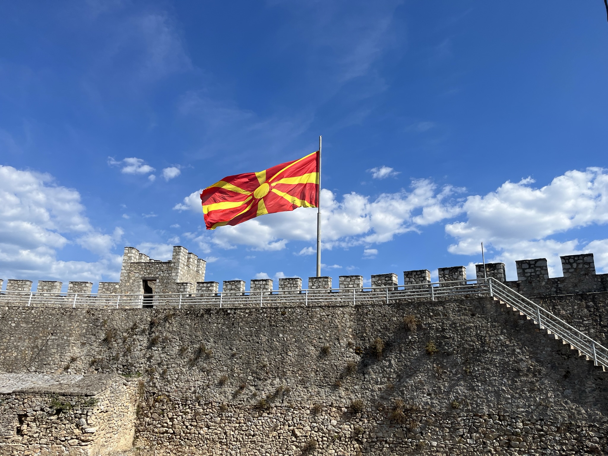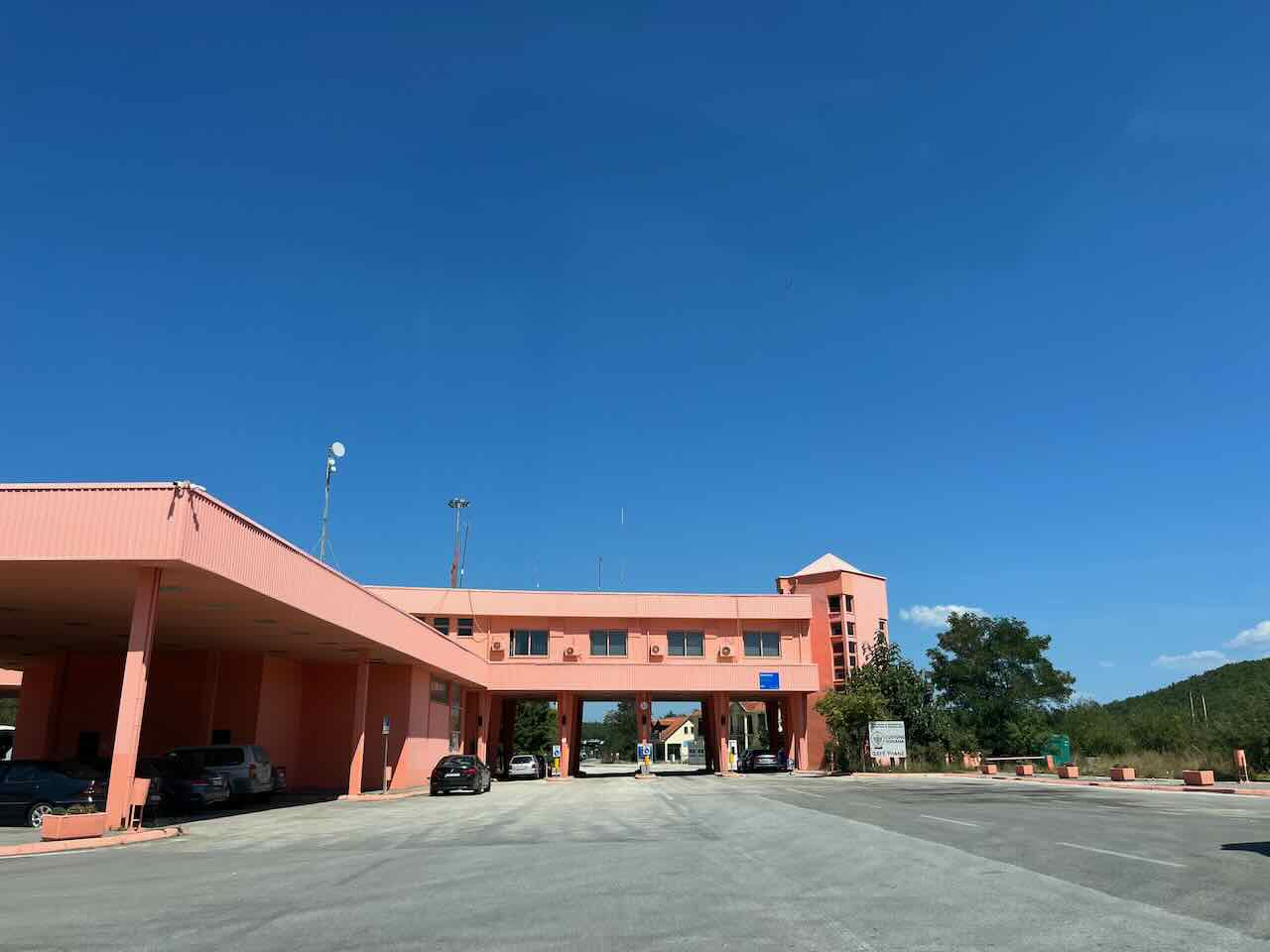 알바니아에서 북마케도니아로 넘어가는 첫번째 게이트를 통과하고 나면, 북마케도니아와 유럽연합 국기가 그려져 있는 두 번째 게이트가 진짜 국경 통과 지점이다. 국경을 통과하기 위해서는 여권과 자동차 문서 (렌터카 회사에서 제공해주는 국경 통과 패스, 구입한 그린카드, 그리고 렌터카 계약서)를 제출하면 된다. 딱히 질문도 안 하고 추가적으로 확인하는 것도 없는 간단한 국경 통과였다. 우리는 주말이어서 차가 꽤 많은 편이었는데도 불구하고 알바니아에서 북마케도니아로, 그리고 북마케도니아에서 다시 알바니아로 돌아오는 양쪽 국경을 통과할 때 각각 10분 이상 걸리지 않았다.
