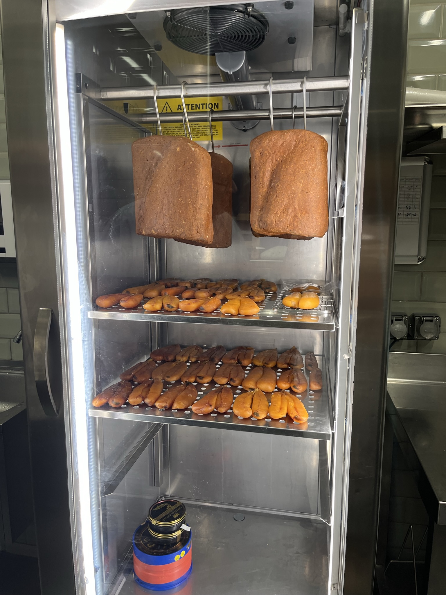 직접 들어가서 보는 주방은 각종 숙성중인 고기, 햄, 생선과 실험중인 다양한 요리재료들, 그리고 쉐프들의 아이디어를 적어놓는 화이트보드부터 실제로 요리하고 서빙해서 나가는 키친 앞쪽까지 흥미롭지 않은 곳이 없었다. TURK의 테이스팅 메뉴가 아니라 경험이라고 강조하는데는 이 키친투어가 큰 역할을 담당하고 있는 것 같다.