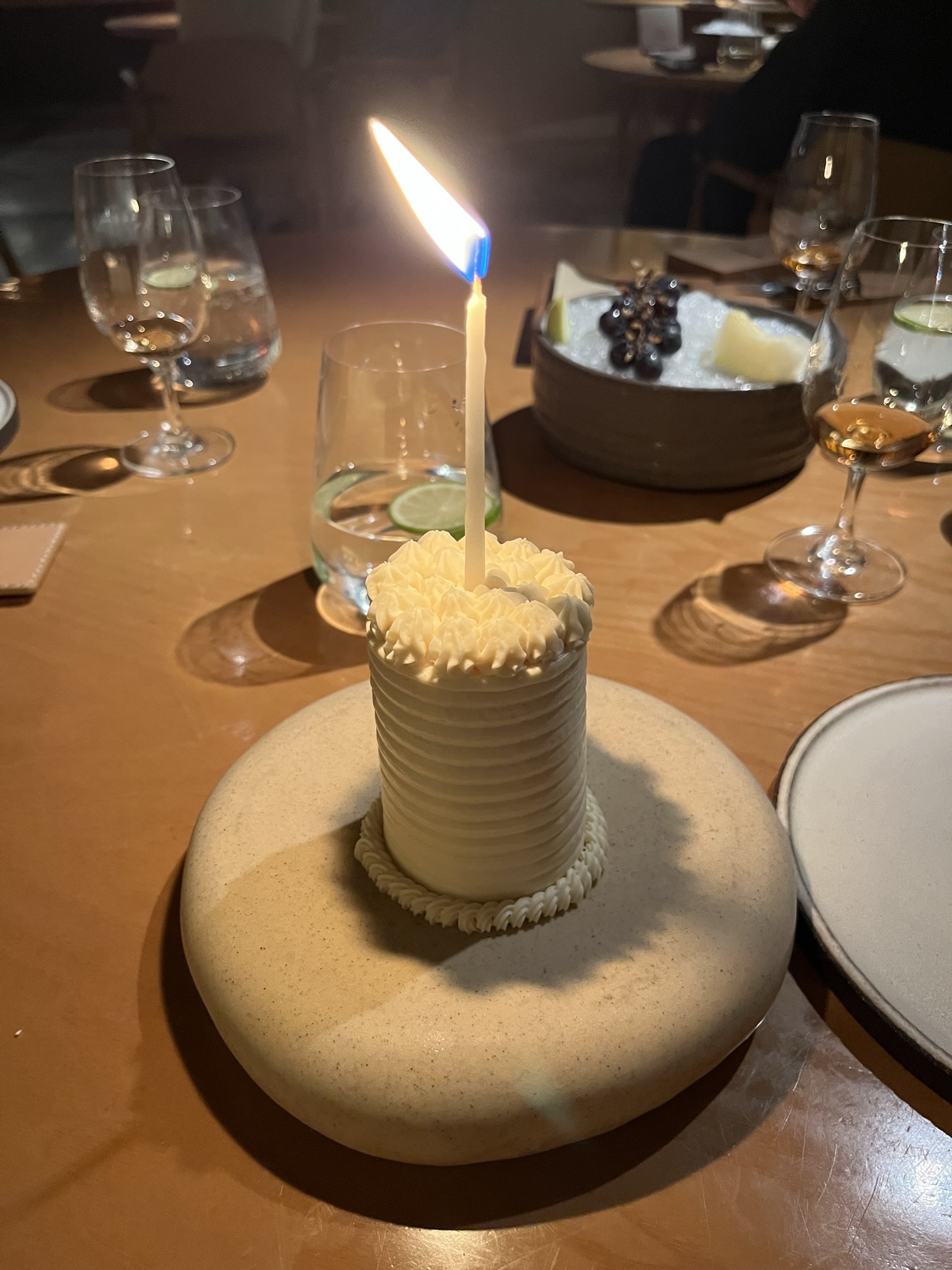 와인페어링에는 포함되어 있지 않았던 화이트 포르투 와인까지 서비스로 받고, 생일도 아닌데 생일케이크까지 받았다. 내 생일이 아니라고 정직하게 말했는데도 이미 지난 생일을 축하하라고 하신다..ㅋㅋ 감사합니다.. 그렇게 진짜 마지막 디저트 케이크까지! 와우 너무 배부르다!ㅋㅋ