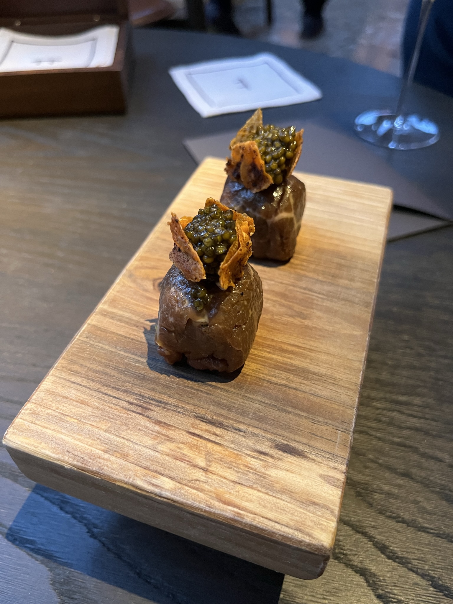 다음 코스는 곡물을 감싼 숙성된 고기 위에 캐비어가 올려 나온 보기에도 맛도 고급진 메뉴!!