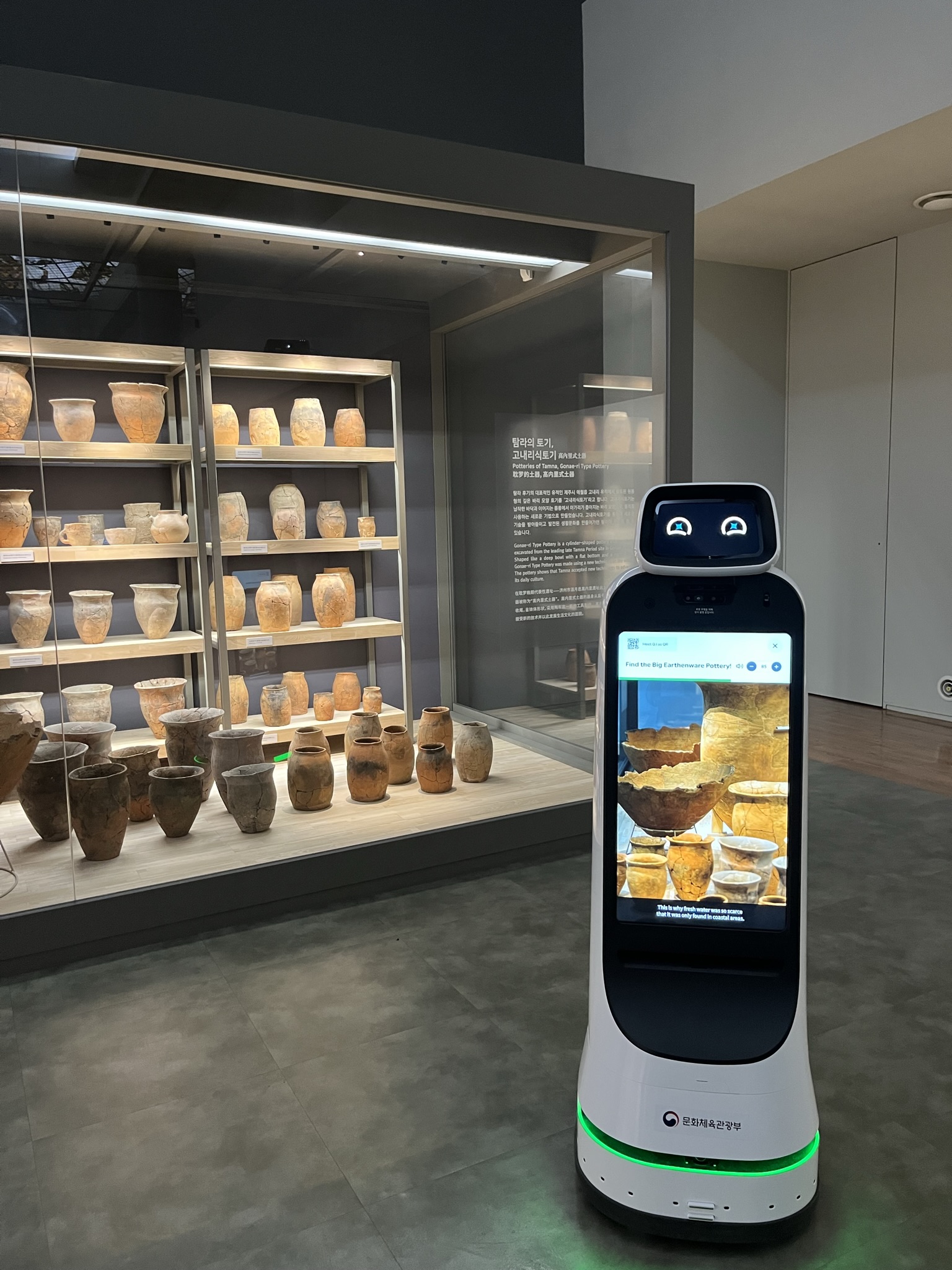 중앙홀에서 전시 안내를 부탁하면, 선사시대부터 고려시대, 조선시대까지 직접 먼저 앞장서서 걸어가며 (!!) 우리를 다음 전시품으로 안내해준다. 우리는 로봇의 뒤에서 졸졸 따라가며 각 전시품마다 로봇 가이드님의 친절한 설명을 들으며 제주의 역사를 배울 수 있었다. 전시안내는 한국어, 영어 등 다양한 언어를 선택해서 들을 수 있다.