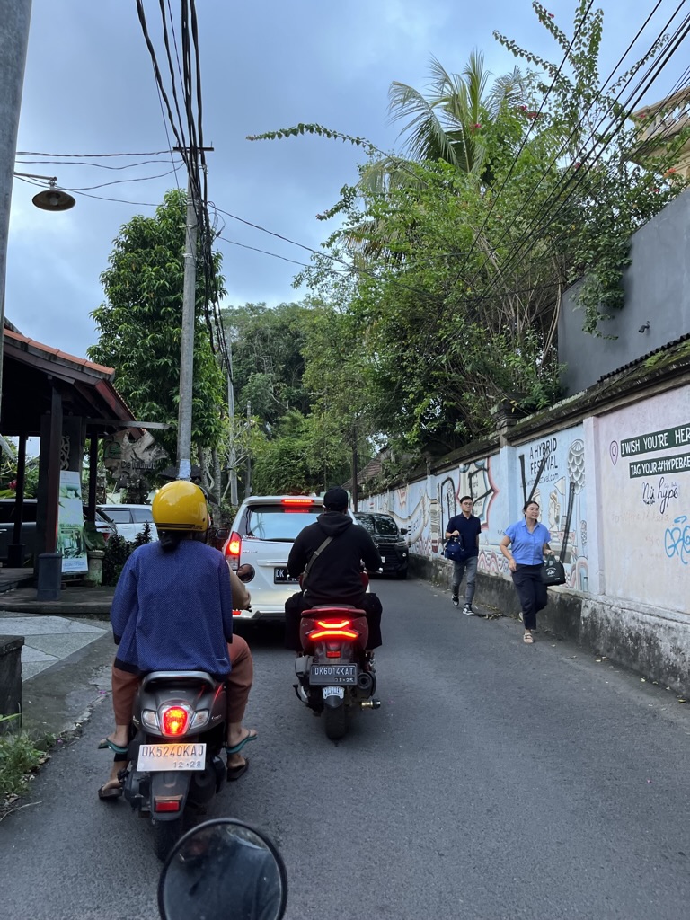 10년만에 다시 도착한 발리! 이번엔 한달살기를 위해 우붓으로 왔다. 여전히 아름답지만 뭔가 불편하다.. 10년전에 여행을 왔을 때에도 그랬던것 같기는 한데, 스쿠터들이 많아도 너무 많다. 밖에 나와 있으면 스쿠터 소음이 너무 심해서 귀가 먹먹할 정도이고, 큰길이고 작은길이고 지나다니는 스쿠터 때문에 걸어다니는게 너무 위험하다. 엎친데 덮친격으로 우붓에는 제대로 된 도보도 없어서 도시 내에서 마음 편하게 걸어다닐 공간이 거의 없다. 우붓의 메인 관광지에서 조금만 벗어나면 옛날의 한국 시골 느낌으로 집집마다 개들이 많아서, 개가 무서워서 더욱 더 걸어다닐 수가 없다.